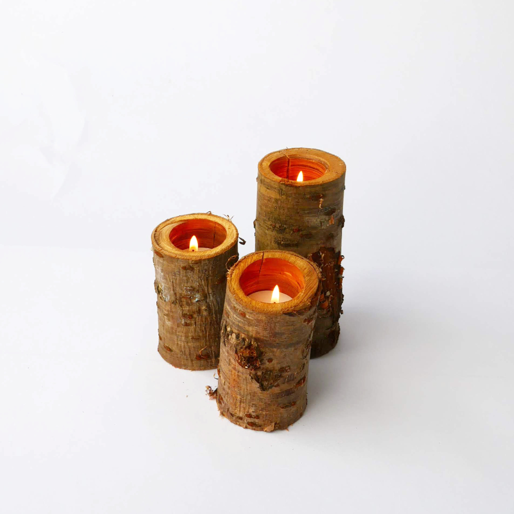 3 stuks handgemaakte sfeerlichthouders van hout van een Japanse sierkers